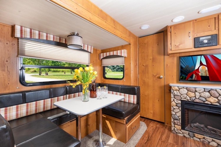 Primary on our list was a bedroom with a door, not a curtain. To get this, you have to look at the larger models, or find something creative like the Gulfstream Vintage 19ERD or 23RSS. These adorable trailers use the bathroom door to also block the bedroom from the rest of the camper. While we loved the kitschy feel, we decided early on that for a family of three people and two dogs, we were going to need more room. Plus, we weren’t sure we were ready for bystander campground attention such a cute camper was going to cause.