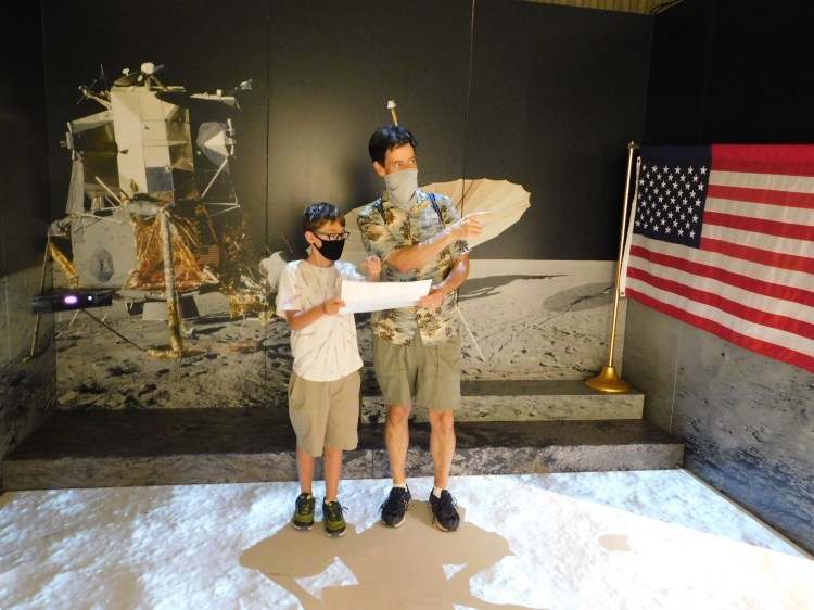 In Huntsville, we went to see The Rocket Center to see the Saturn 5 Rocket and other rockets. The rockets were humongous! We ate at the Mars Grill. We also saw a model of Sputnik the satellite. I got a Neapolitan Space Ice Cream Sandwich, it was dry, crumbly and delicious! That day was super hot! Mom got too hot in 10 minutes wearing her face mask outside in the Rocket Garden.