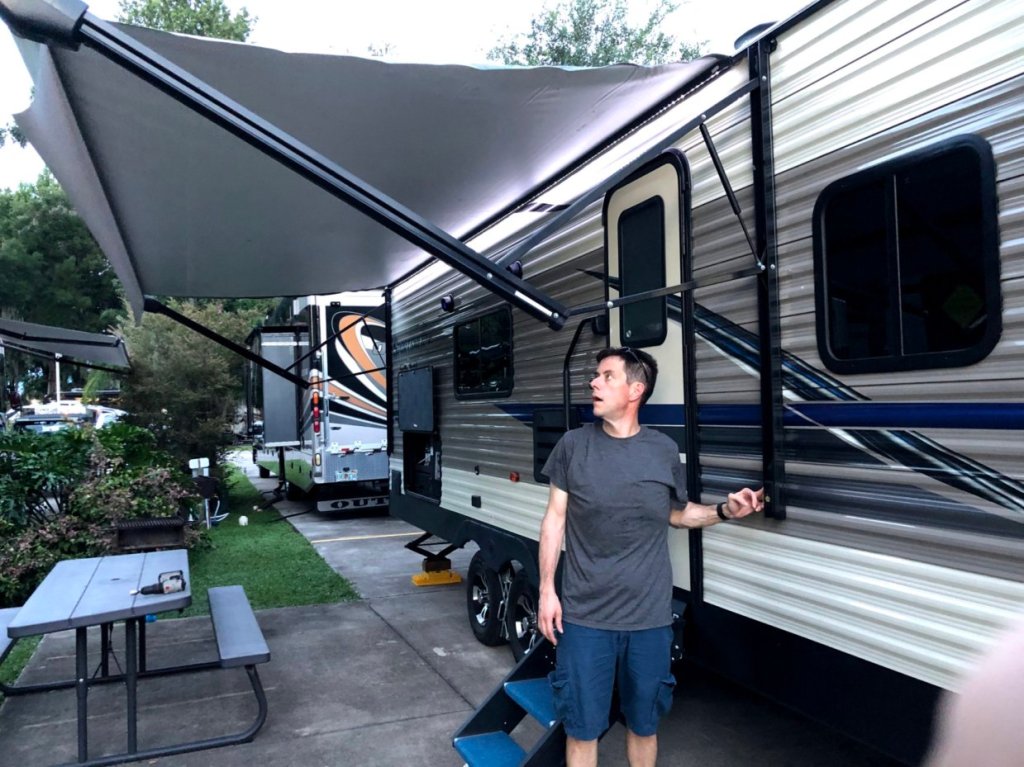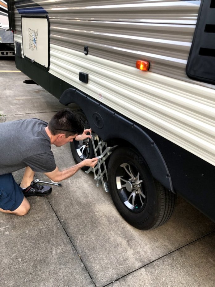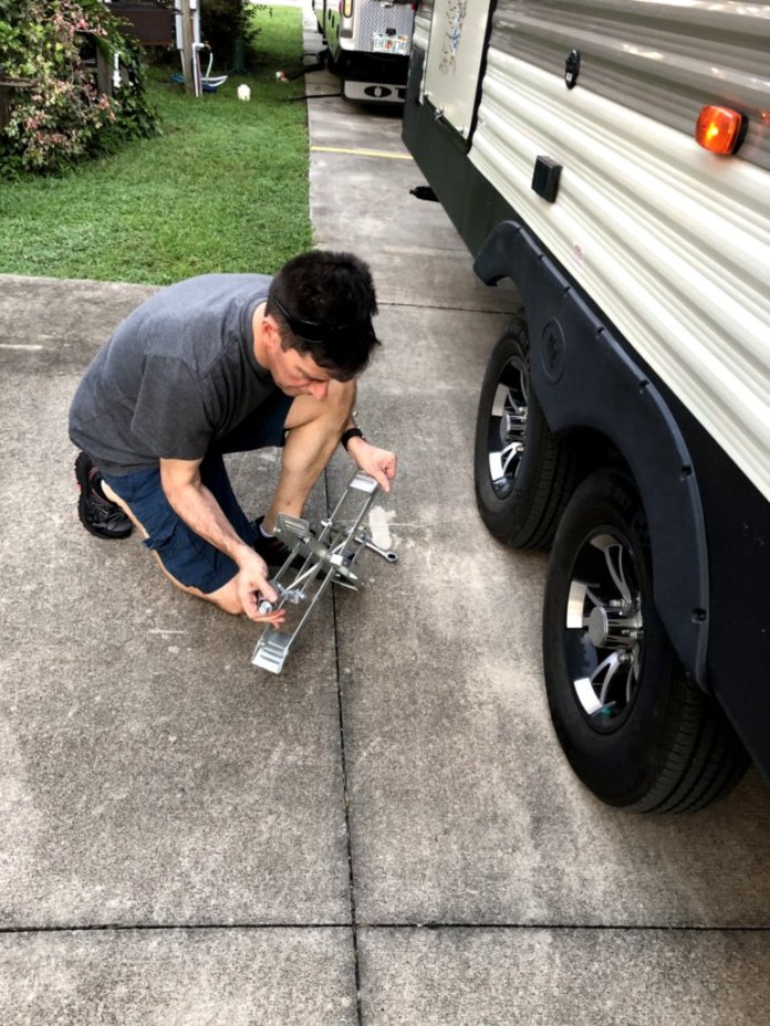 These jacks are not meant to lift the entire trailer off of the ground. Check your manual for your specific trailer. After that its just a quick leveling of the stairs, if they need it, opening the awning and hooking up your power, water, and sewer, but that’s another blog…