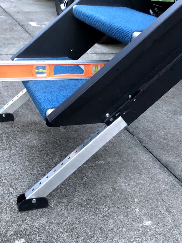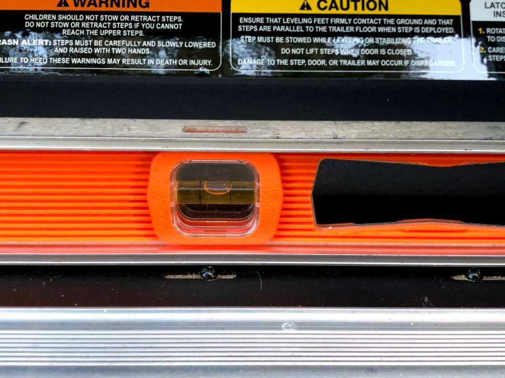 Fire back up the ole leveling system and get it level from front to back. Personally I go for as close to dead level as you can get. Some people like to level the trailer to pitch to one corner or the other. Whichever you choose is correct for your trailer. I open up the side door and place my level on the floor making sure its not sitting on anything but the flooring (a stray Lego can really mess this step up,) Then its usually lower to the front of the trailer until the bubble settles in the middle of the gauge.