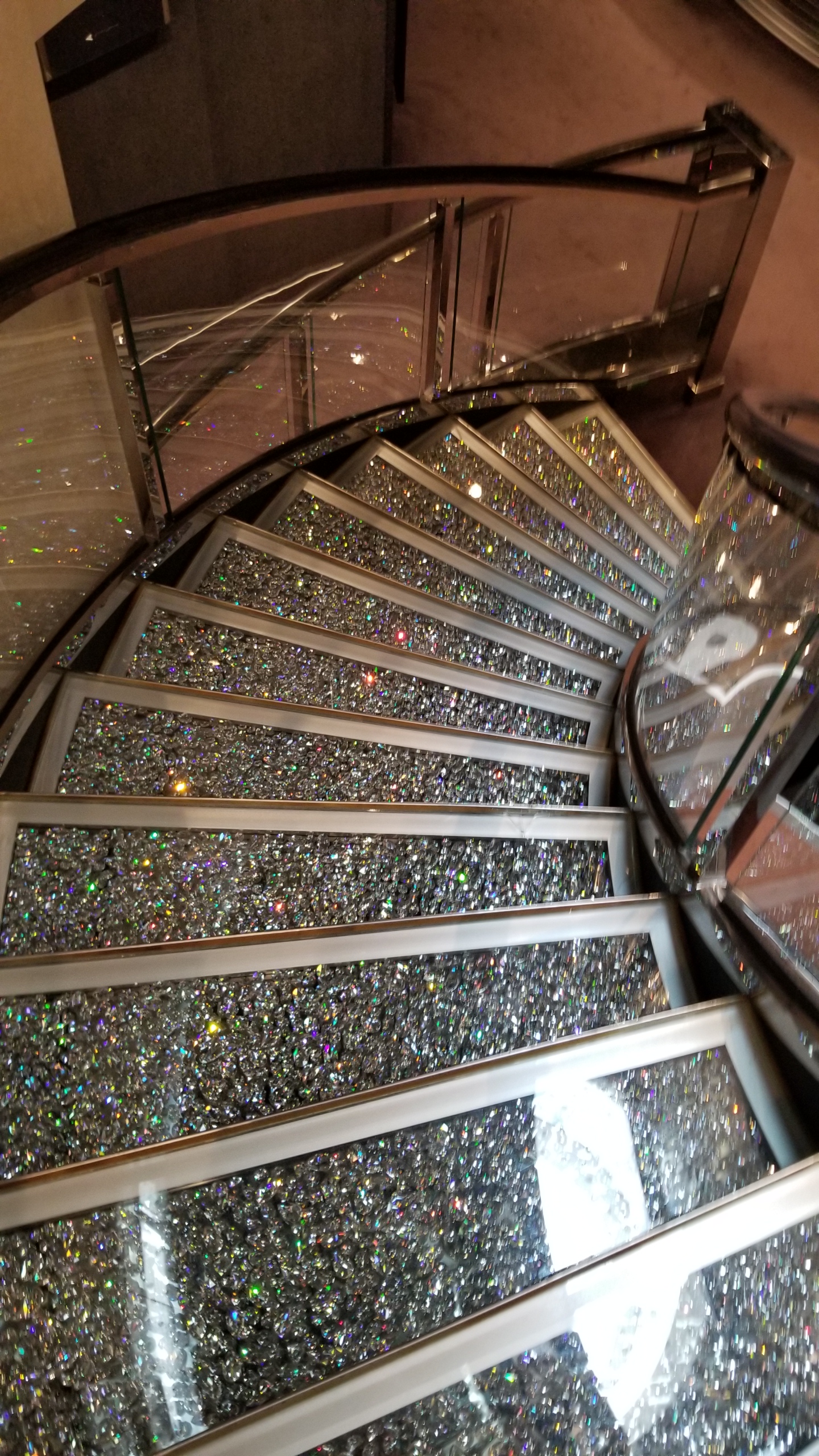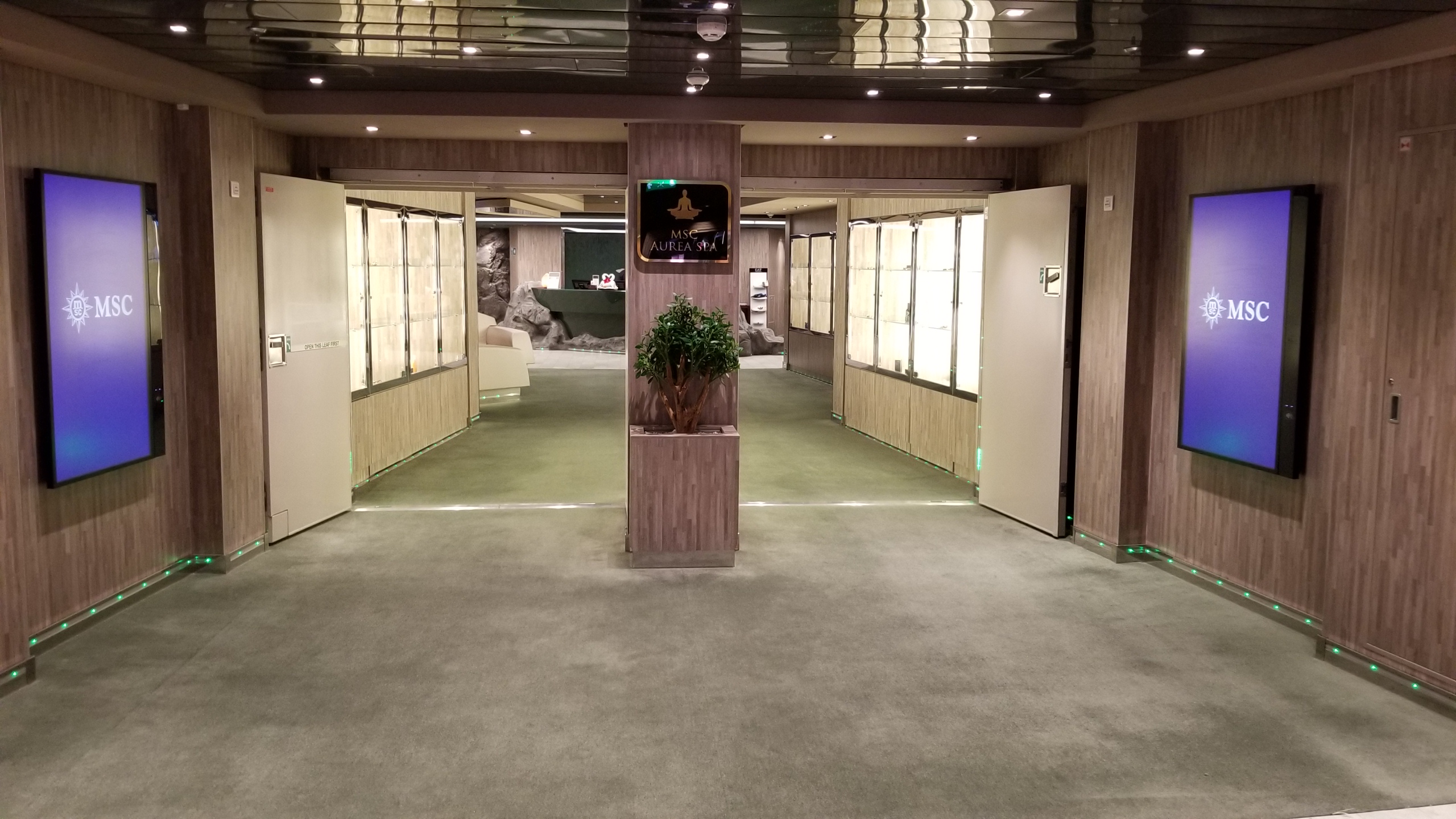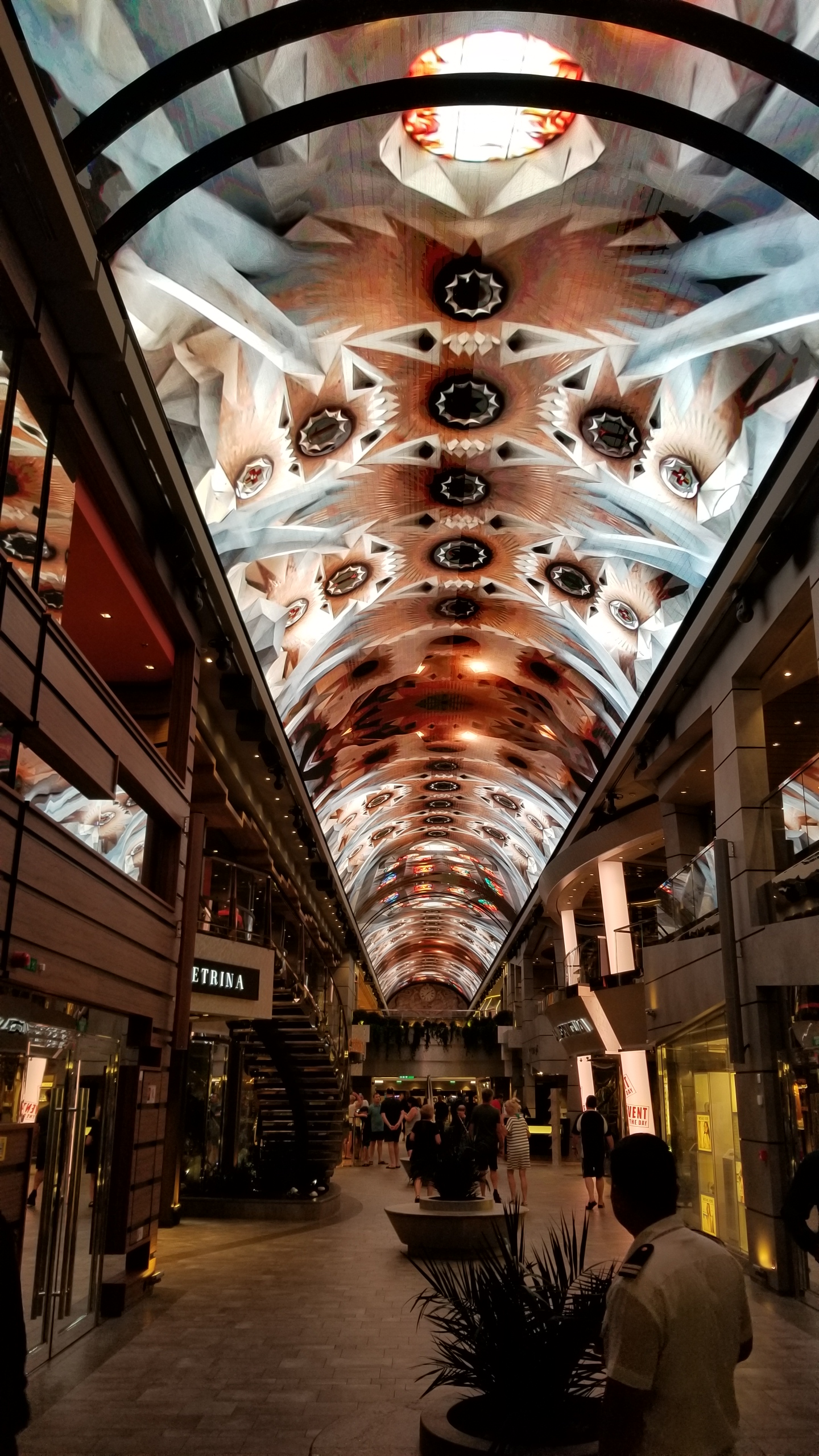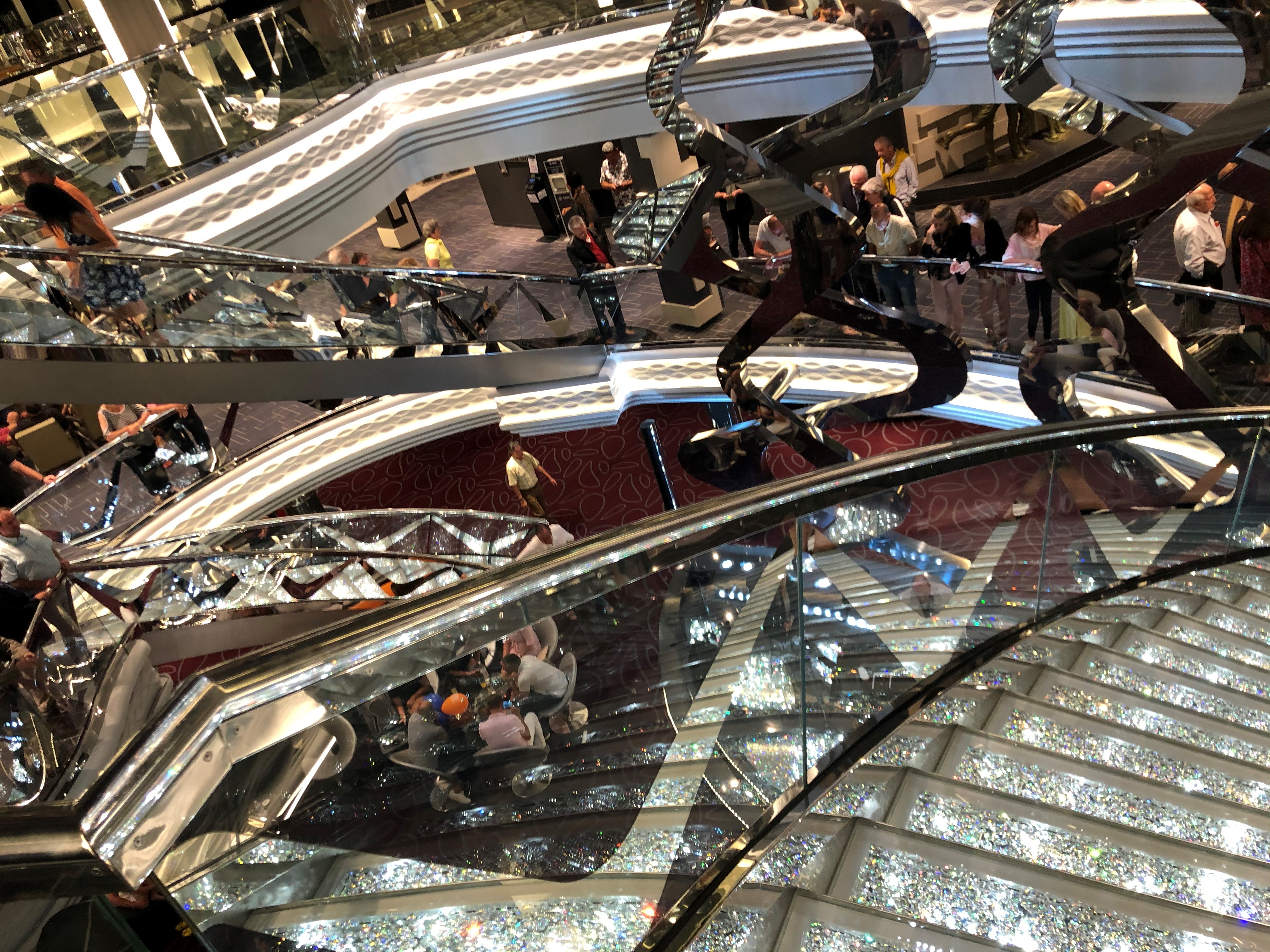 The boat was beautiful. Weighing at 171,598 tons, the Meraviglia has 2,244 staterooms and can hold 5,714 passengers. Its piece de resistance is the Galleria with a two story Swarvoski diamond staircase and 315 foot LED ceiling that constantly changes into different images.