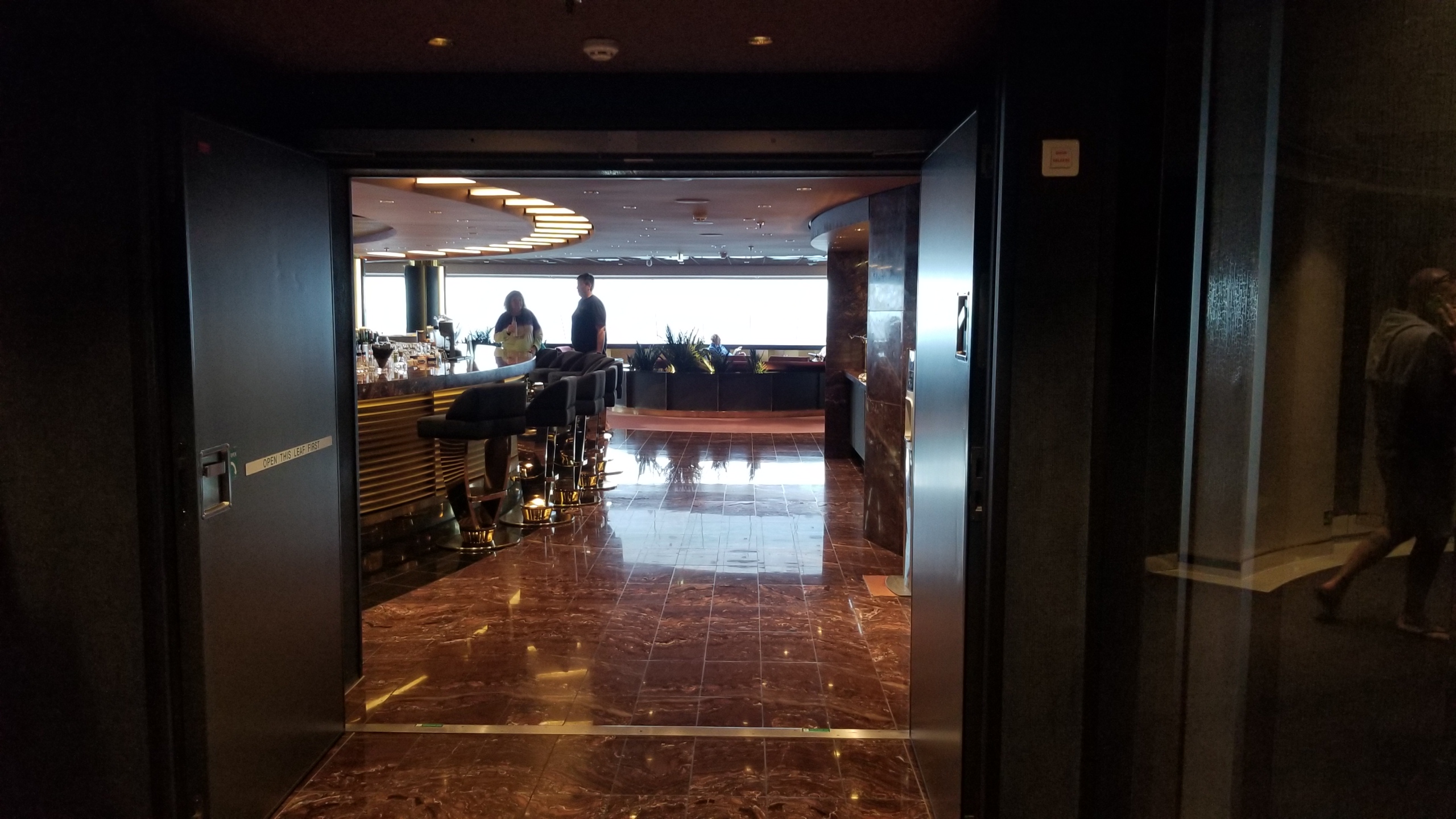 Brad and I continued to make the most of our day. (The free drink package we had was very helpful.) After dinner, we headed down to the lounge which was mostly deserted. Grabbing our drinks from the bar, Brad struck up a discussion with a gentleman who said he had already heard via Twitter that the Cayman Islands had denied us entry. He then went in search of crew member who verified the information and said the announcement would not be made until the following morning.