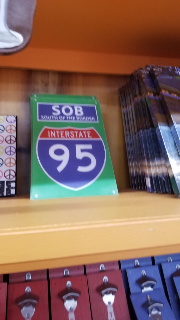 We decided to give this roadside attraction a try on our camping trip home in June. SOB (as they refer to themselves) consists of a gas station, hotel, campground, restaurants and multiple tacky tourist gift shops lining both sides of the road. There are also supposedly attractions, but we’ll get to that in a minute. It is located in Hamer, South Carolina just “south” of the border from North Carolina.