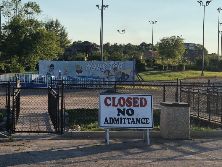 We finally ended up at the Peddler Steak House eating overpriced steaks with a handful of other hungry travelers. Afterwards, we decided to explore the rest of the buildings of SOB – and that’s when we found it – behind the restaurant and the abandoned motel (closed). The perfect park for your Halloween scares. All we were missing was Pennywise and a red balloon. Ethan will demonstrate: