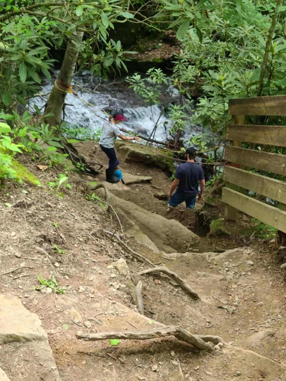 We did take the dogs for a dog-friendly hike to the Soco Waterfalls. Advertised as an easy to moderate hike along a boardwalk, it was a little different when we got there.