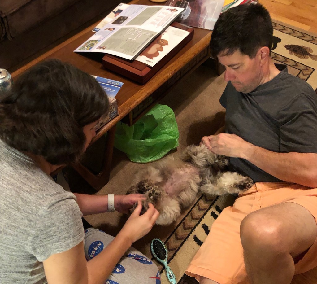 Also, here’s what happens when your dog goes running down a mountainside after a squirrel and comes back covered in green stuff.