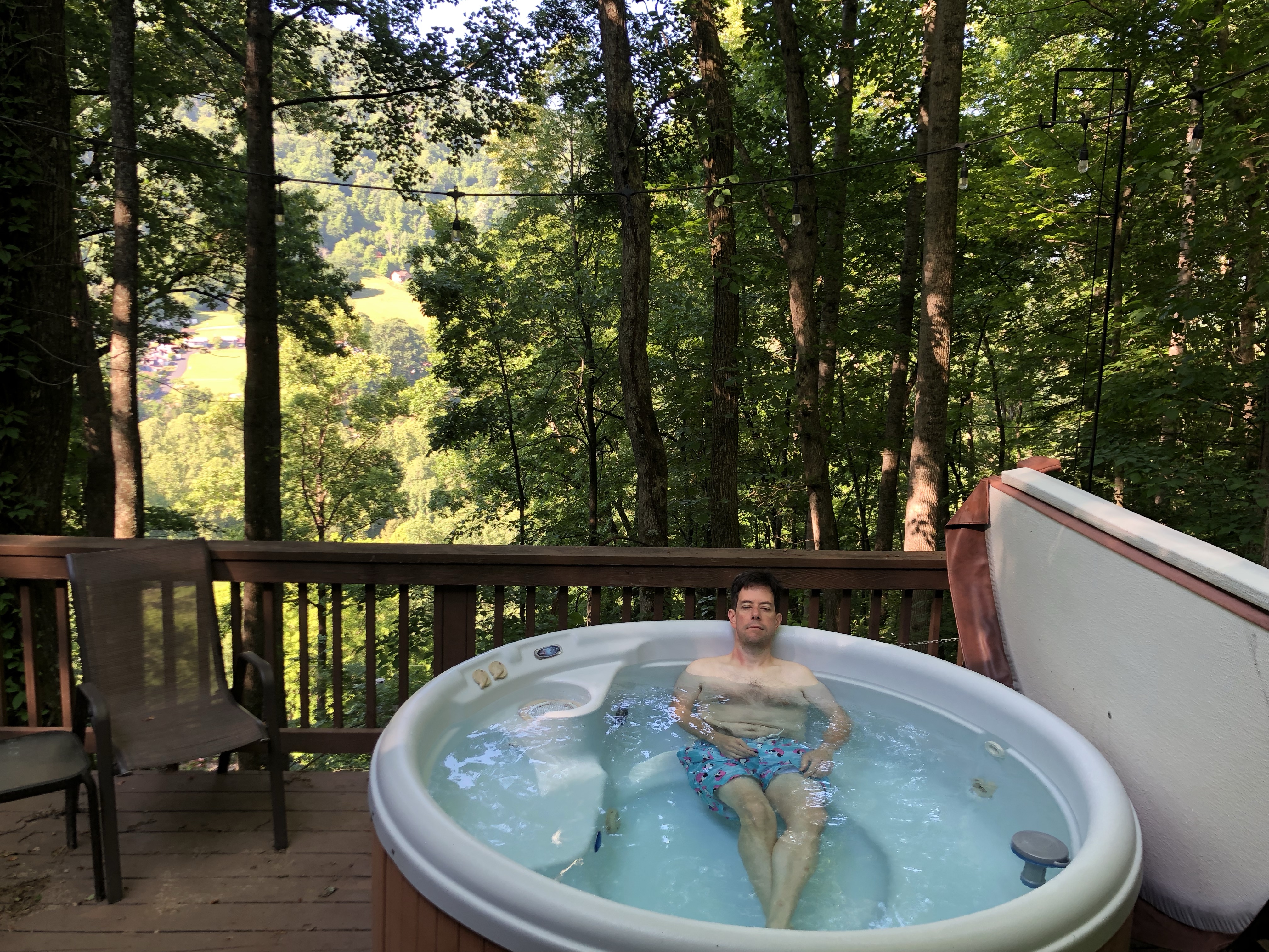 The house was halfway up a mountain in the woods, but felt homey and secluded. It came complete with two stories, a fireplace, hot tub, porch, waterfall and…